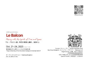 2025年10月21日 (火) – 10月24日 (金) に、上野キャンパス大学会館2F展示室にて、GA学生のキュレーションによる展示『ル・バルコン展:時空の精霊と戯れ、演奏にを開催いたします。