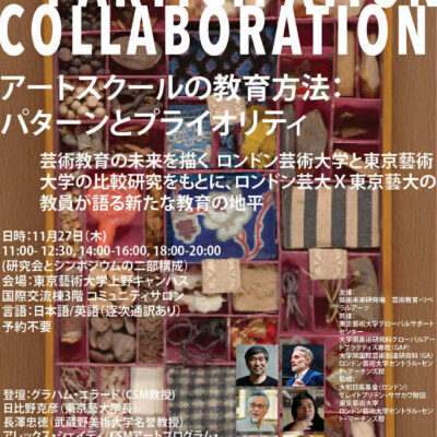 この度、ロンドン芸術大学セントラル・セント・マーチンズ校(CSM)グラハム・エラード教授をお呼びし、【研究会&シンポジウム】「IMPROVISATION, COLLABORATION, PARTICIPATION: アートスクールの教育方法:パターンとプライオリティ- 芸術教育の未来を描く ロンドン芸術大学と東京藝術大学の比較研究をもとに、ロンドン芸大X東京藝大の教員が語る新たな教育の地平」を開催します...
